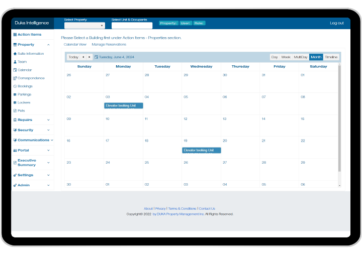 Additionally, the Management Dashboard allows staff to search for essential details like parking and locker information, pet registrations and many other features, ensuring efficient property management.